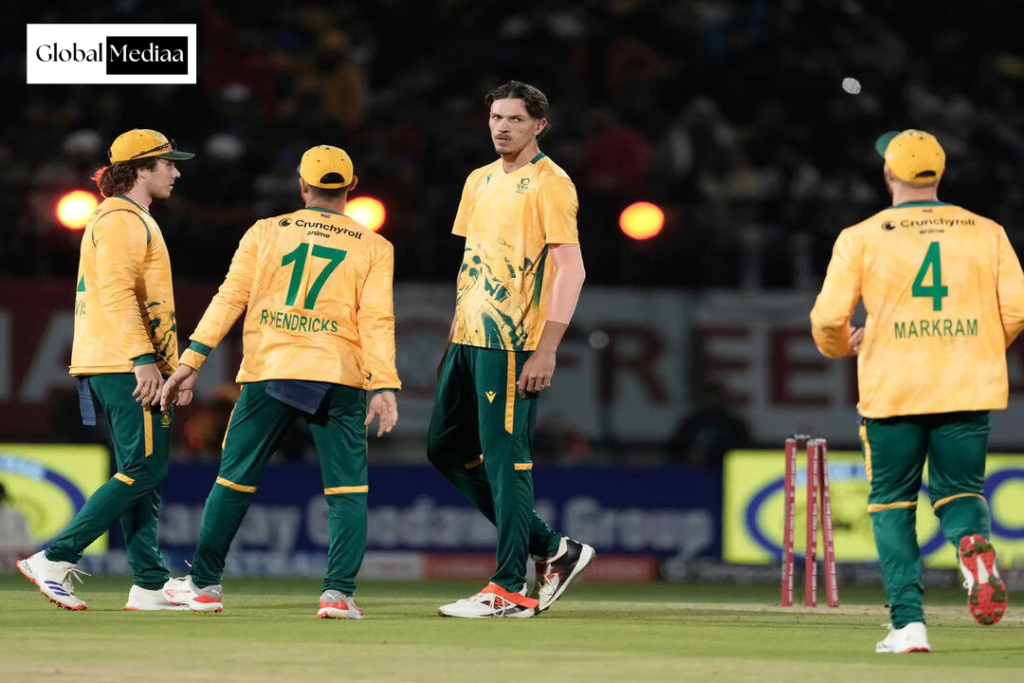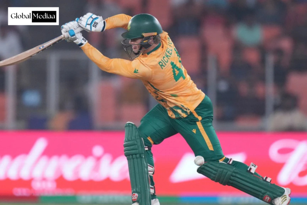 Dilpreet Bajwa battled back with a brilliant delivery to dismiss Quinton De Kock (25 off 22). Markram continued the flow of runs as he raced to a half-century in 28 balls. Markram and Rickelton power South Africa to 104/1 at the end of the 10th over.