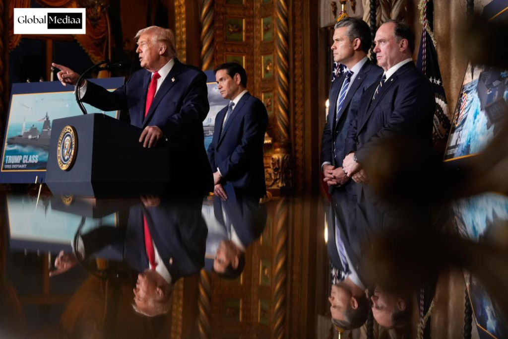 made the announcement at his Mar-a-Lago residence in Florida alongside Pentagon chief Pete Hegseth, Secretary of State Marco Rubio and Navy Secretary John Phelan, with pictures of the planned high-tech vessels on stands nearby.